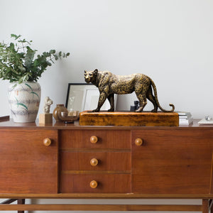 Handcrafted Uniqueness: As each leopard is hand-cast and the patina is hand-applied, slight variations in the bronze shading and spots are natural, making your piece one-of-a-kind.