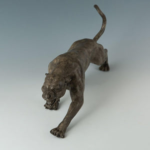 Predator in Motion: 15.4" Stalking Cheetah Bronze Sculpture – Hand-Cast Wildlife Art, Premium Office Decor & Symbol of Focus and Agility