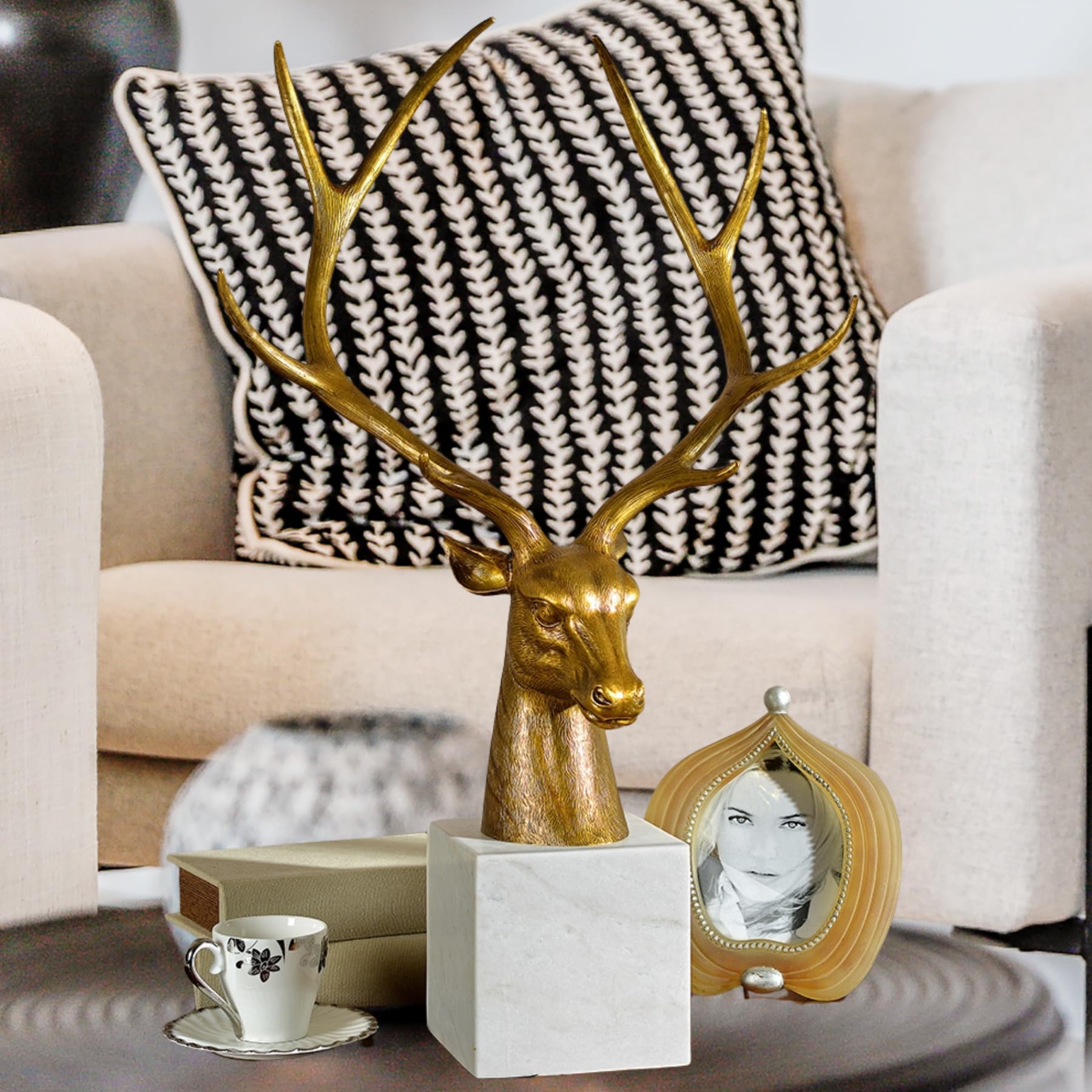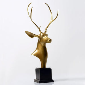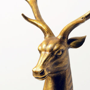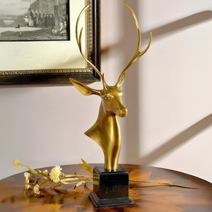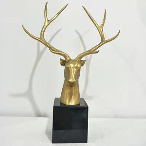 Golden Stag Bronze Collection – Hand-Cast Deer Head Sculptures on Polished Marble Base, Luxury Statement Pieces for Home & Office