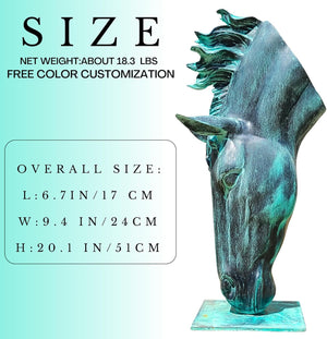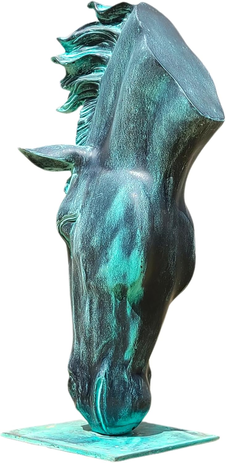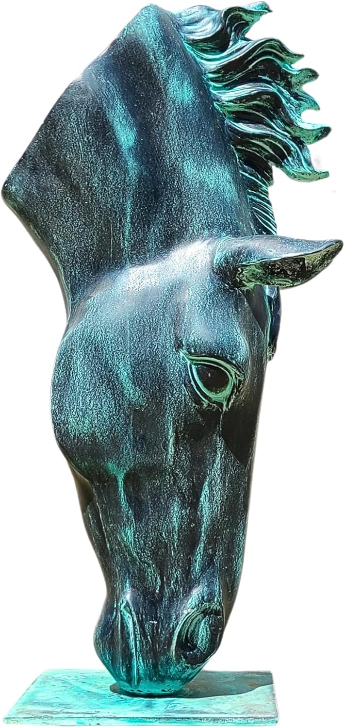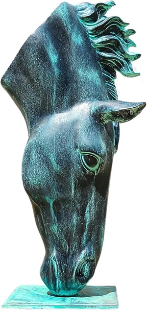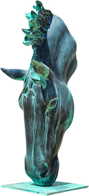 51cm "Still Water" Monumental Bronze Horse Head Sculpture - 8.3kg Pure Solid Bronze Artistry - Antique Verdigris Patina - Bespoke Collectible