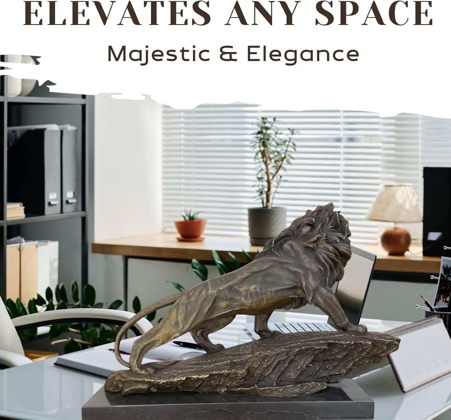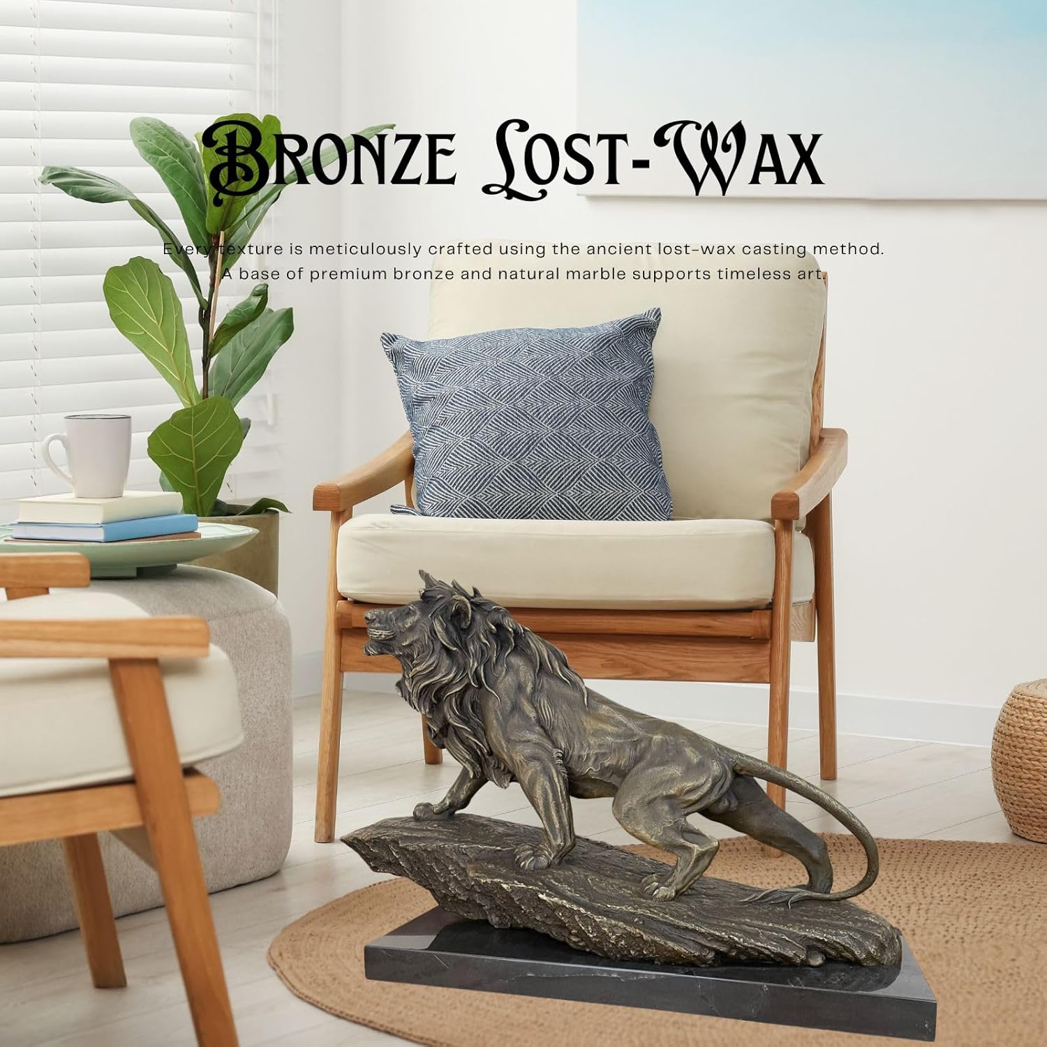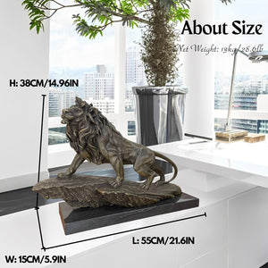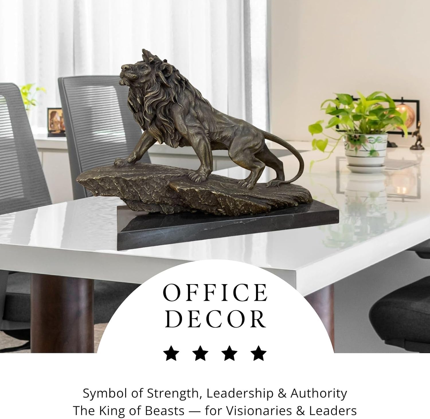 13kg Grand Bronze Lion Statue - "The King of Beasts" Sculpture on Solid Marble Base, Luxury Professional Executive Decor
