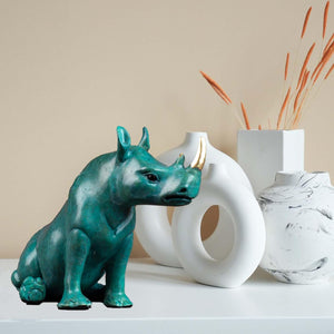 Bronze rhinoceros sculpture is made of high quality bronze casting, combined with the traditional lost wax casting process to ensure vivid details of the sculpture, long-lasting surface luster and strong corrosion.
