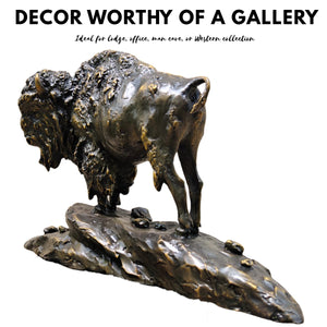 Majestic American Bison Bronze Sculpture - Hand-Cast Buffalo Statue (Lost-Wax Technique) - Large Wildlife Fine Art for Luxury Home, Ranch & Executive Gallery