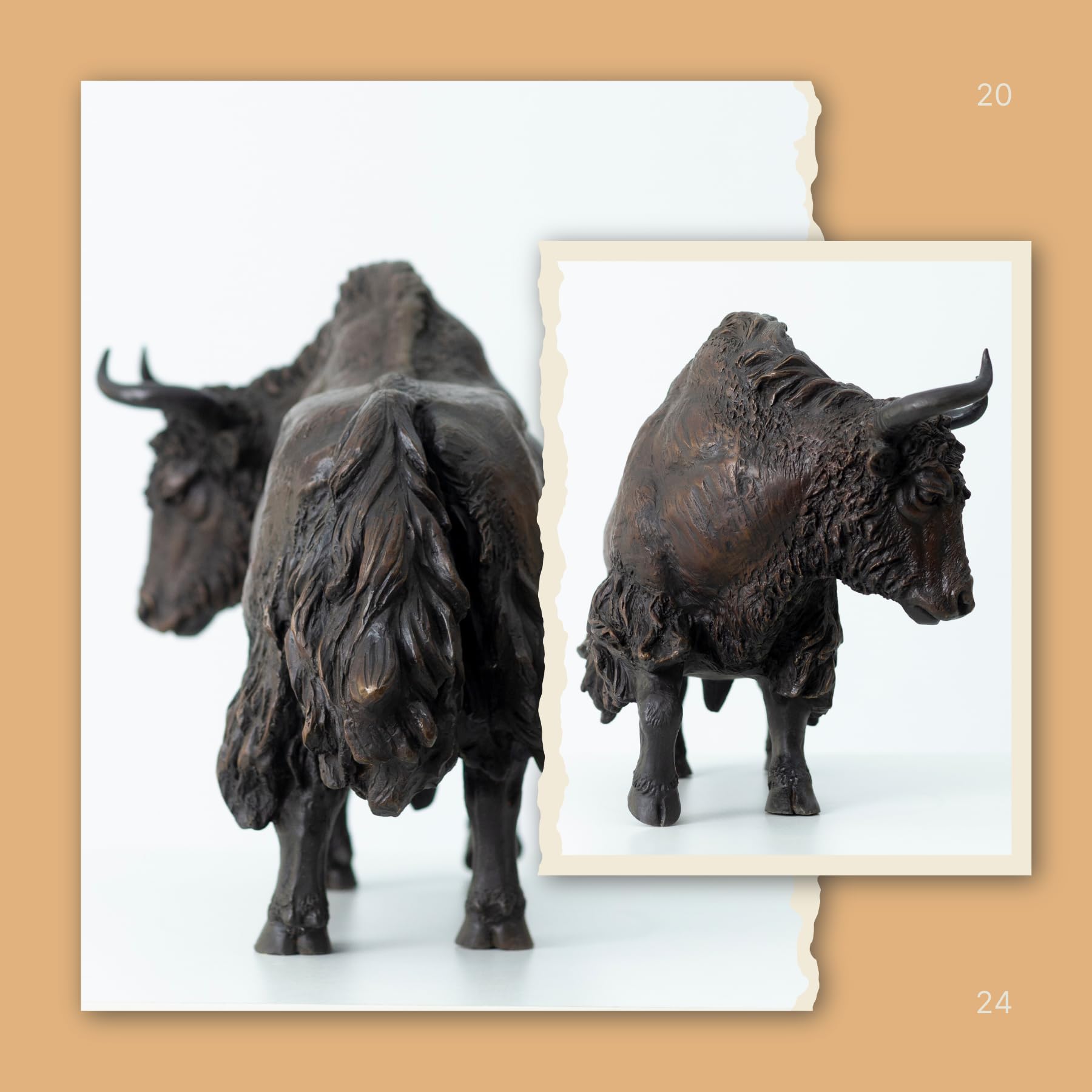 🏆 Museum-Grade Lost-Wax Casting: Unlike cheap resin replicas, our bison are cast in 100% pure bronze. The 32-step traditional process ensures that every detail—from the coarse texture of the hump to the sharp curve of the horns—is captured forever.