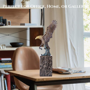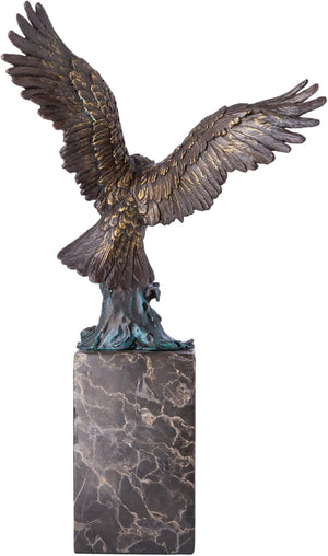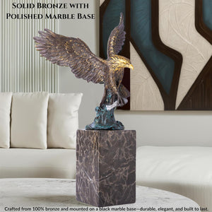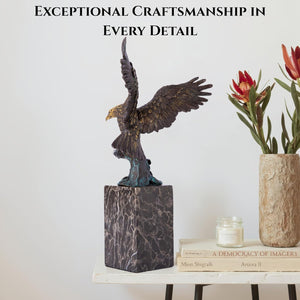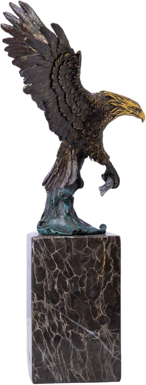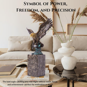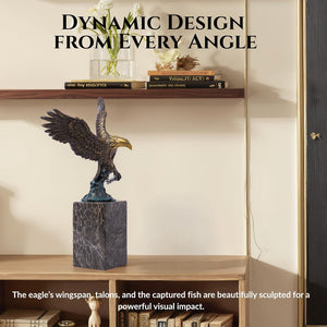 13.8 in-Bronze Swooping Eagle Catching Fish Sculpture – American Bald Eagle Statue with Marble Base, Wildlife Bronze Figurine for Home Decor, Office, Gallery, Gifts and Collectors