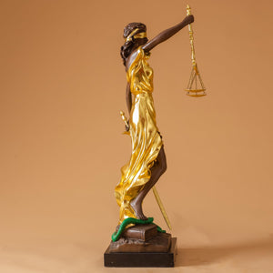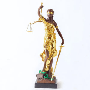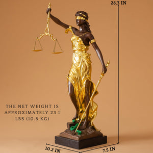 28.3" Majestic Standing - Gold Accents (10.5kg): A tall, elegant silhouette that captures the dynamic power of justice in action. Ideal for framing an executiveβs desk or a prestigious boardroom.