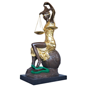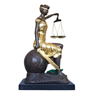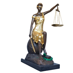 Lady Justice Seated Bronze Statue β Gilded Themis Goddess of Justice Figurine β Handmade Pure Bronze Sculpture with Marble Base β Lawyer Gift & Legal Office Decor