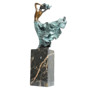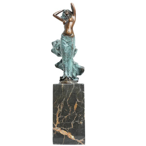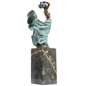 Bronze Nude Girl Sculpture on Natural Marble Base, Sexy Female Bronze Statue and Sculpture for Home Office Decor (4.7 * 3.2 * 12.2")