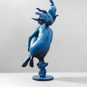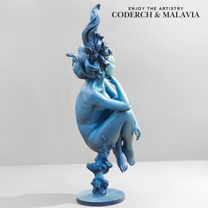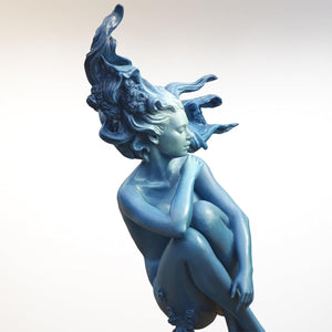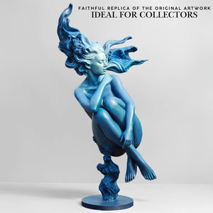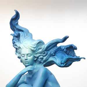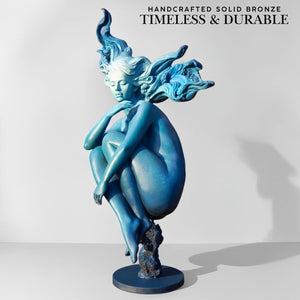 🌊 Ethereal Blue Patina: Unlike traditional brown bronzes, this piece features a breathtaking aquatic blue finish. The color depth mimics the shimmering surface of water, enhancing the dreamlike quality of the human form.
