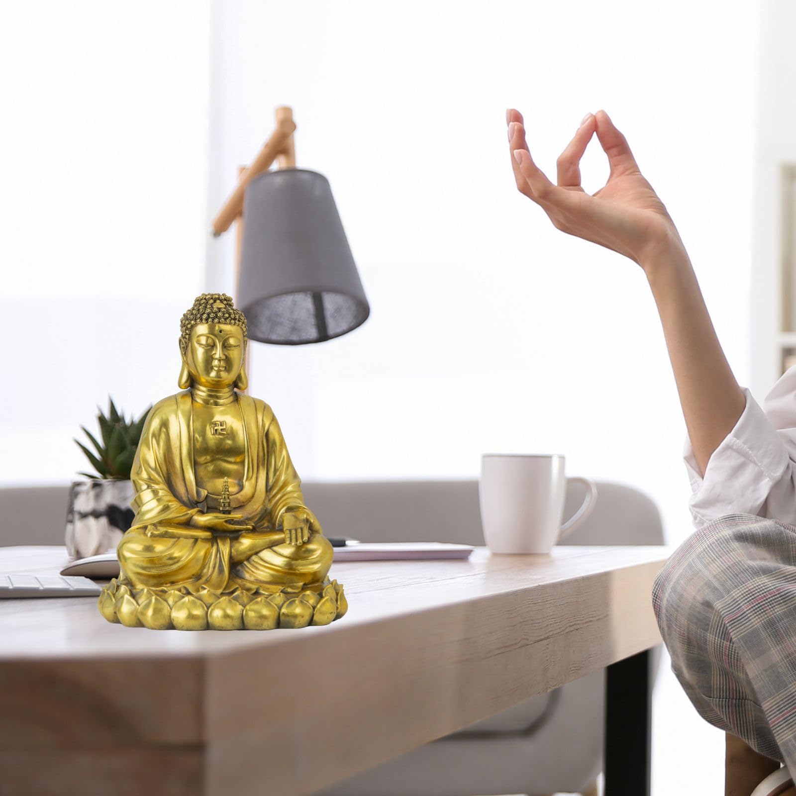 Features: Hands held in the Dhyana Mudra (Meditation Gesture) cradling a sacred bowl.