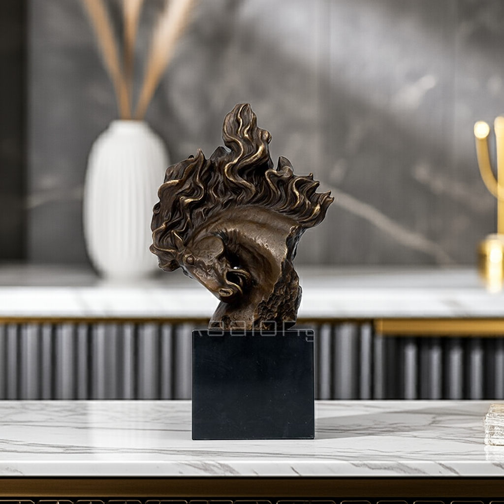Finished by hand through the finest carving and using the lost wax casting method, each strand of mane has been finely carved to highly recreate the sculpture of the horse's head.Sculptures art show texture, simplicity and generous overall light luxury and elegance.