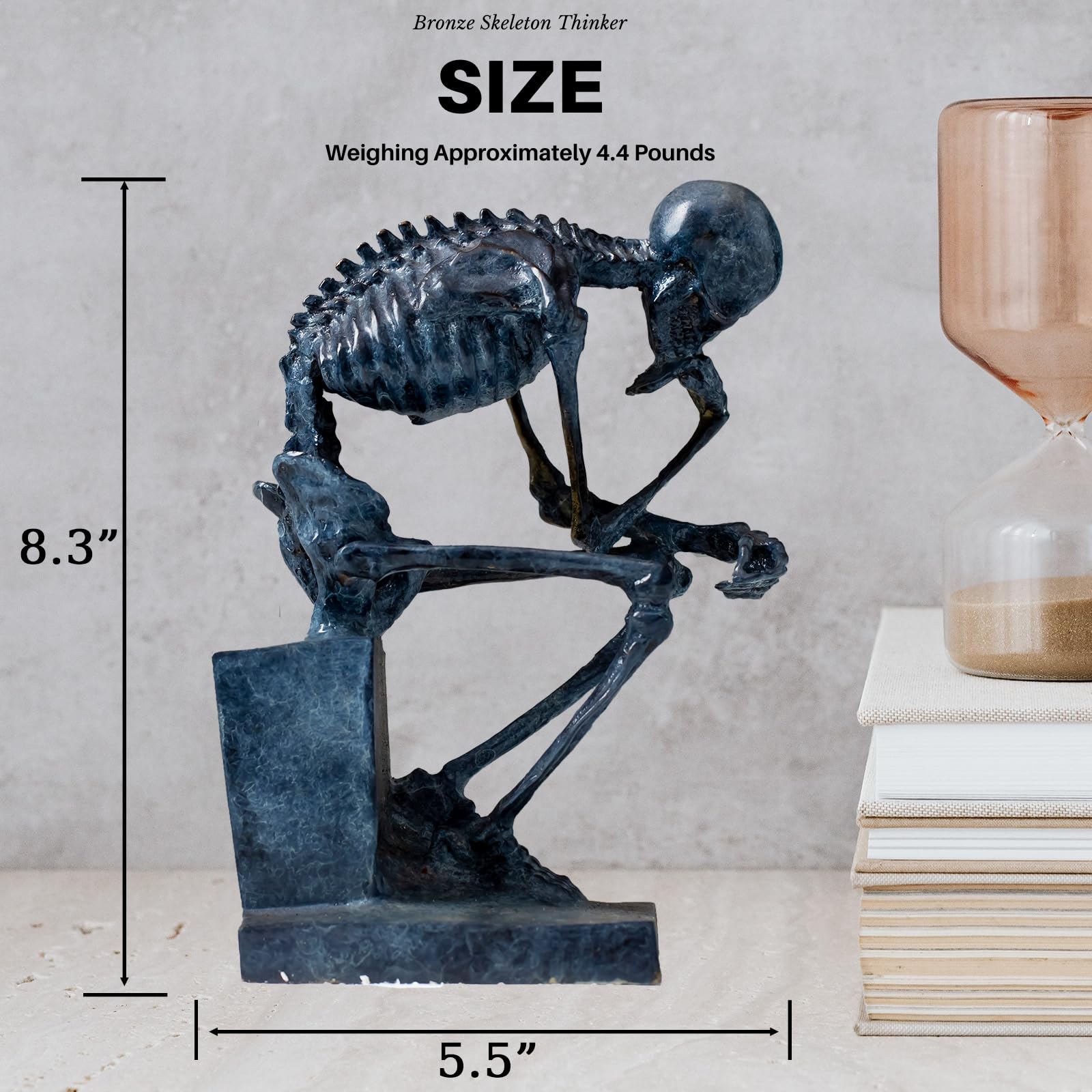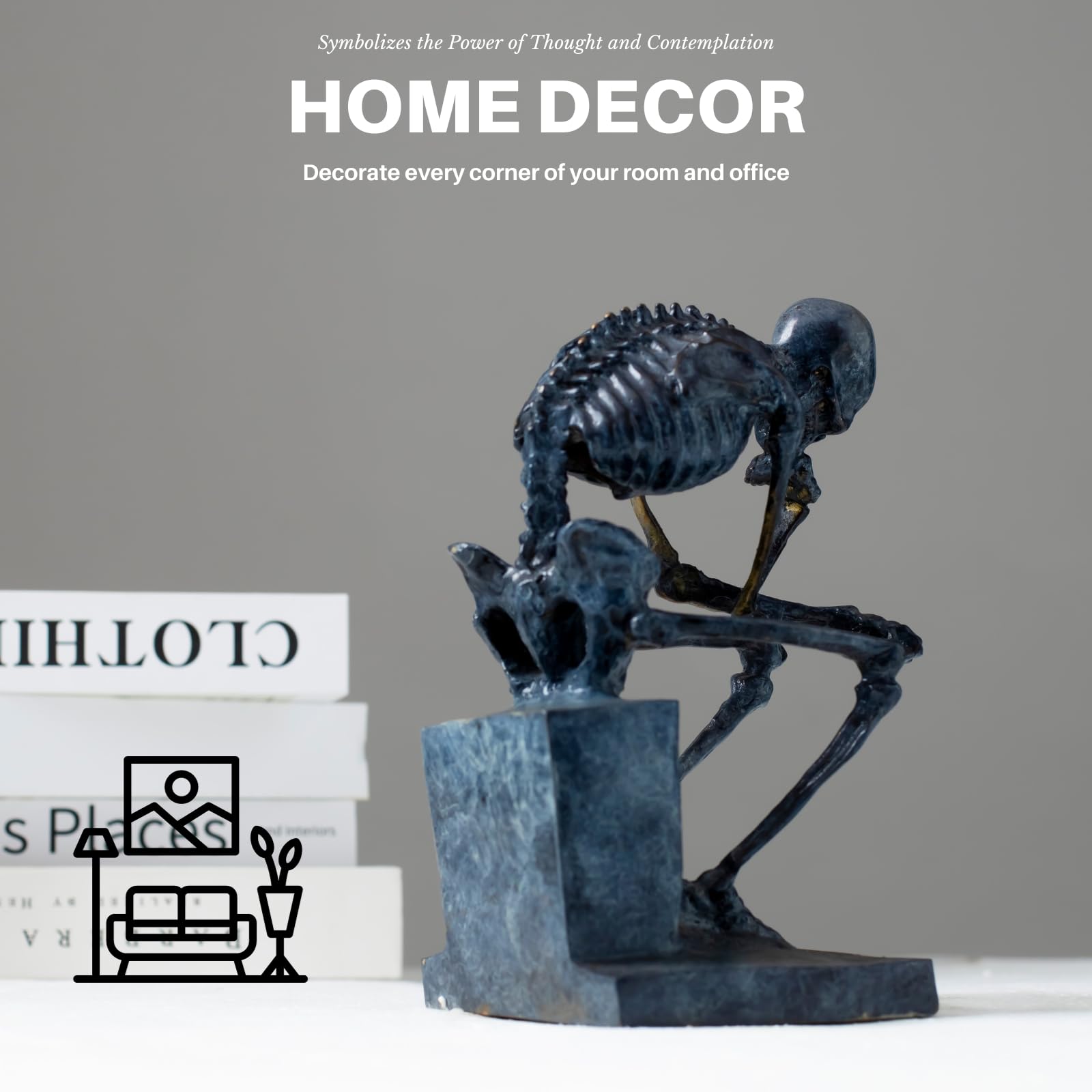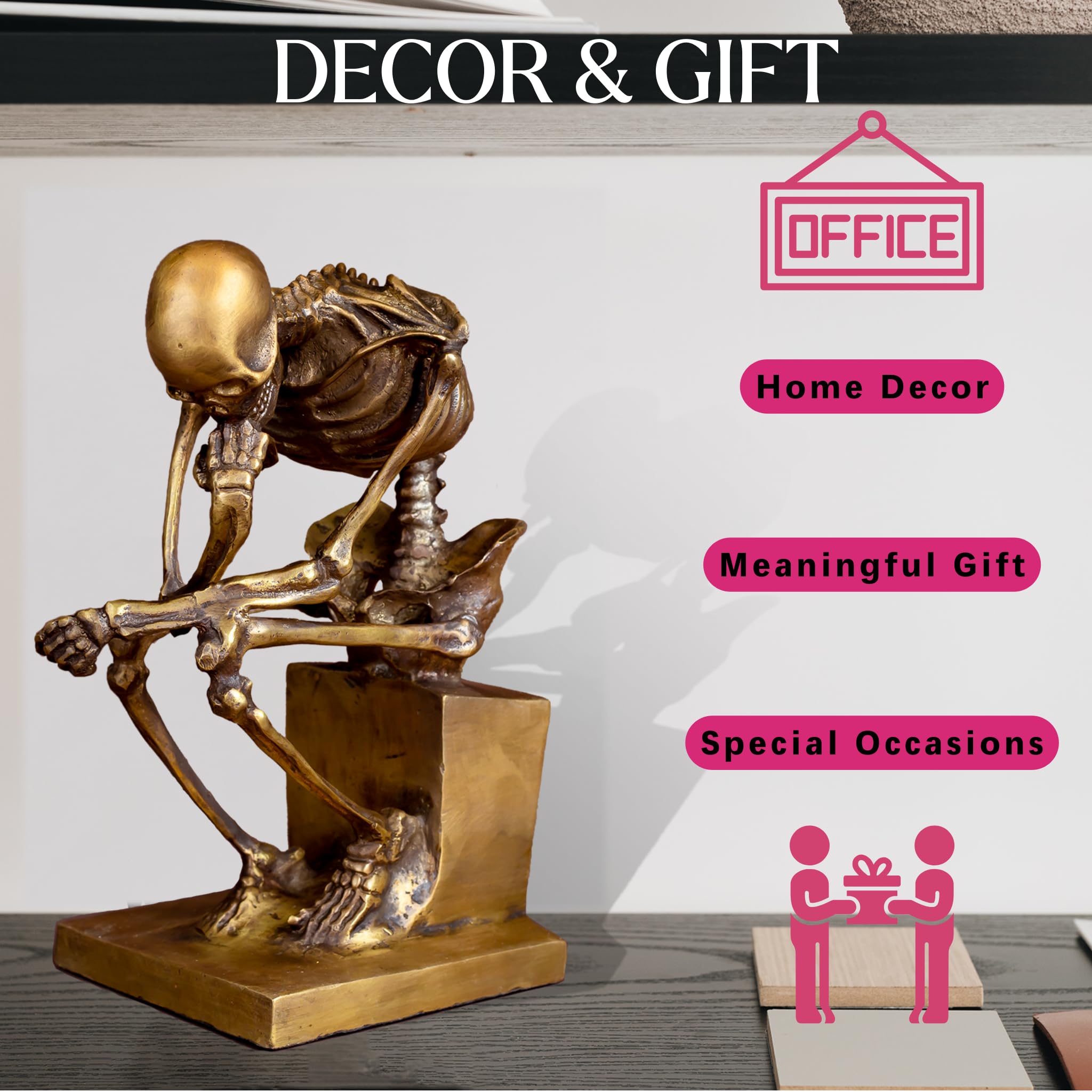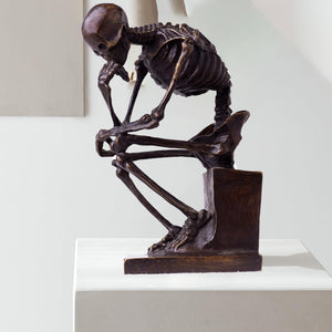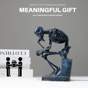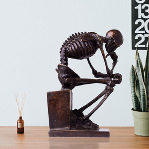 Skeleton Thinker Art Sculpture Decor is rich in intricate details, capturing the subtle contours and contemplative expression of the skull.