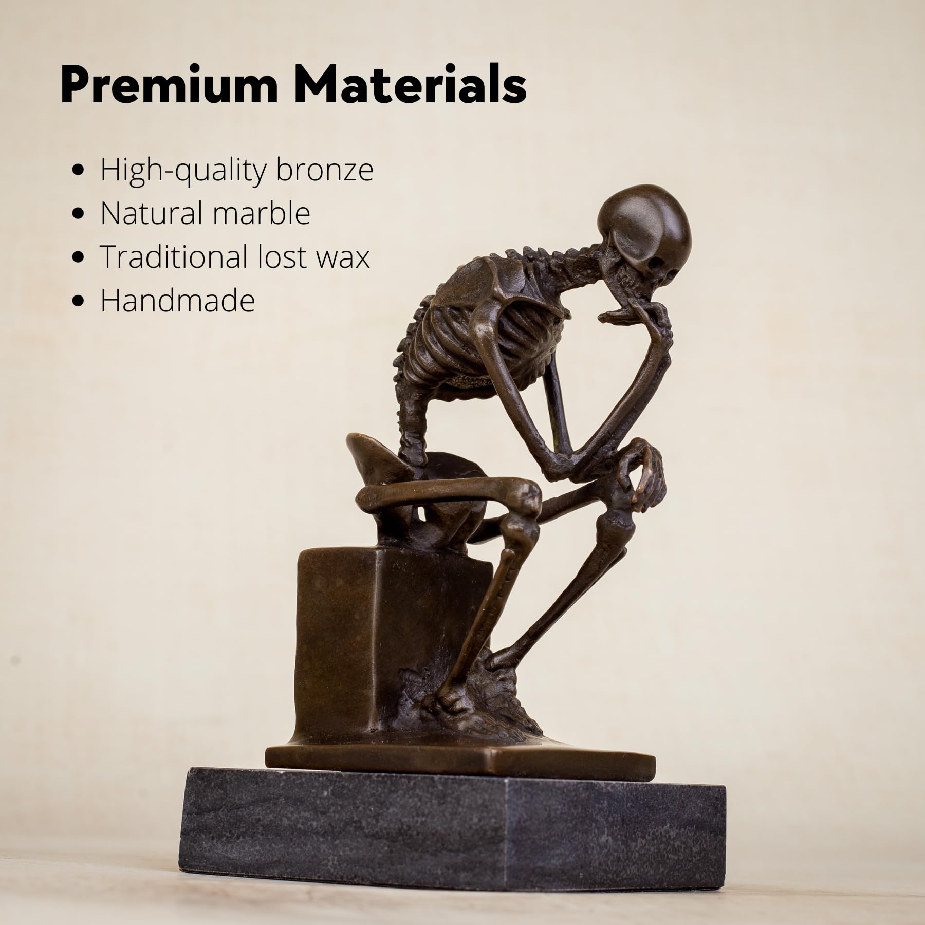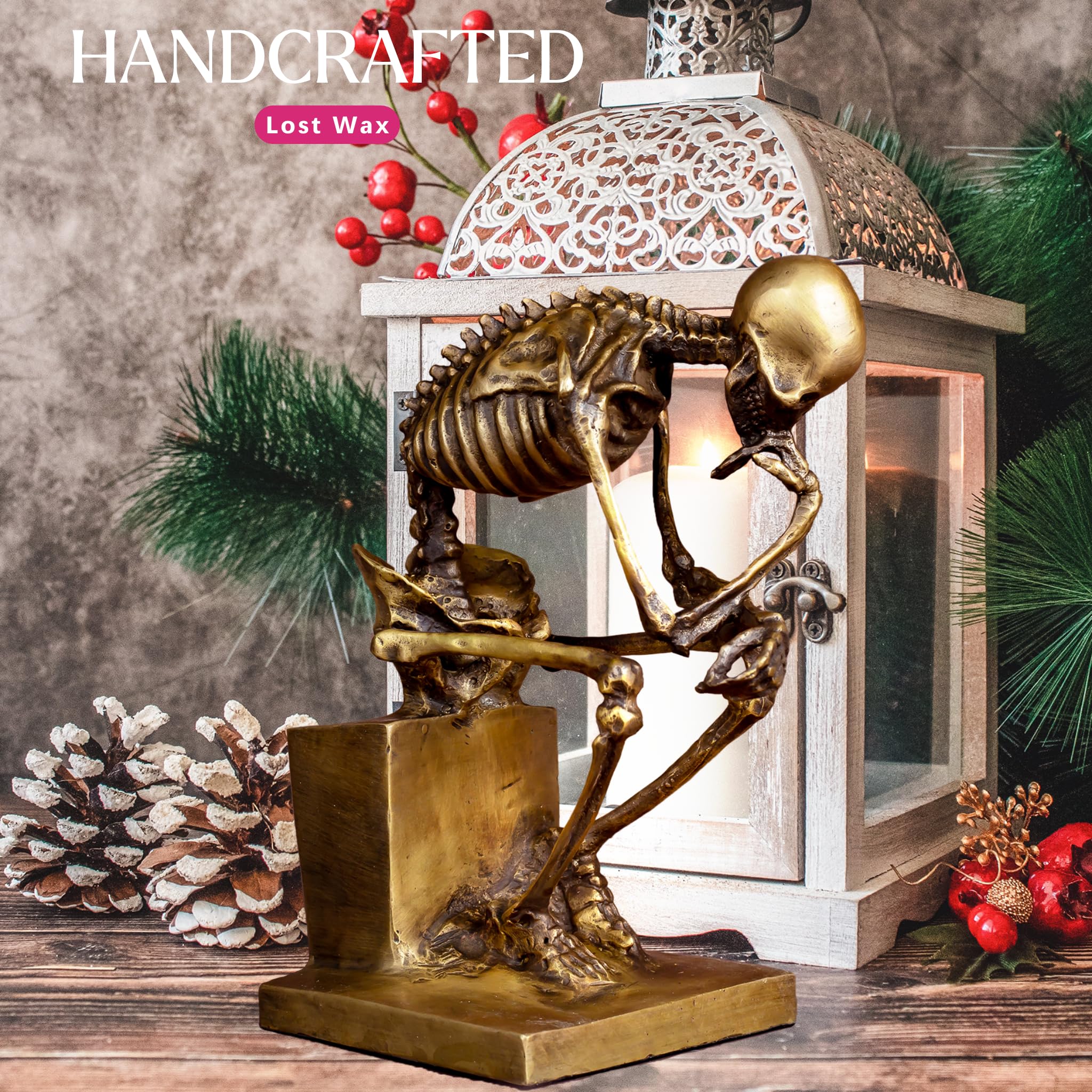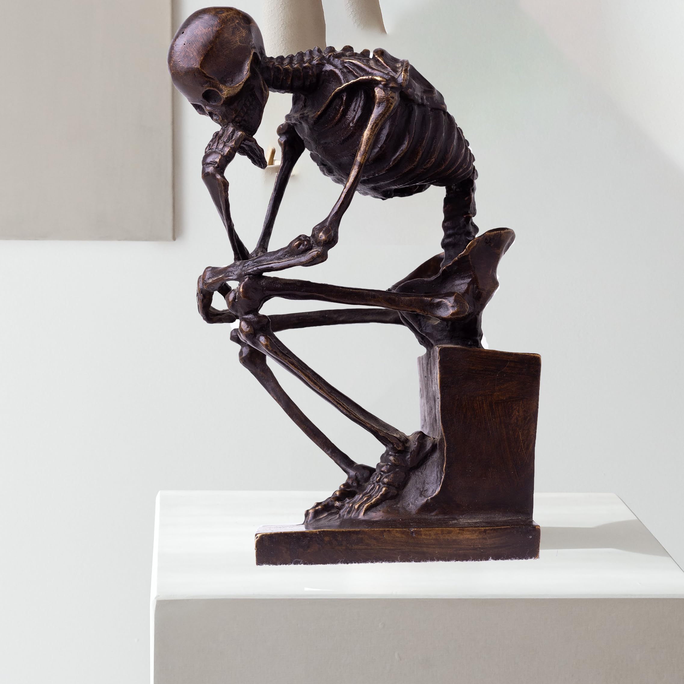 - Each bronze Thinker Figurine Skeleton Art sculpture is meticulously crafted by skilled artisans using the ancient lost-wax casting technique.