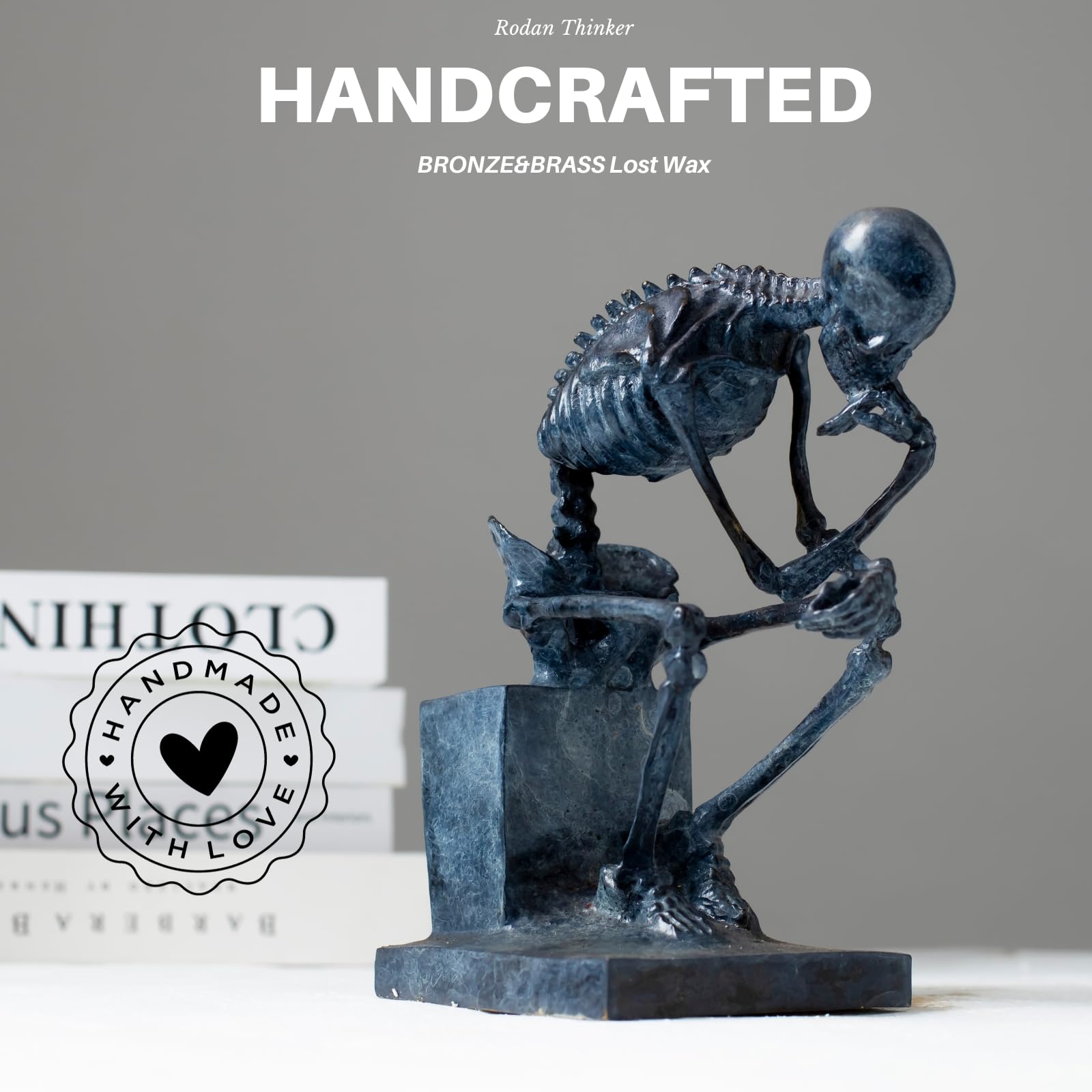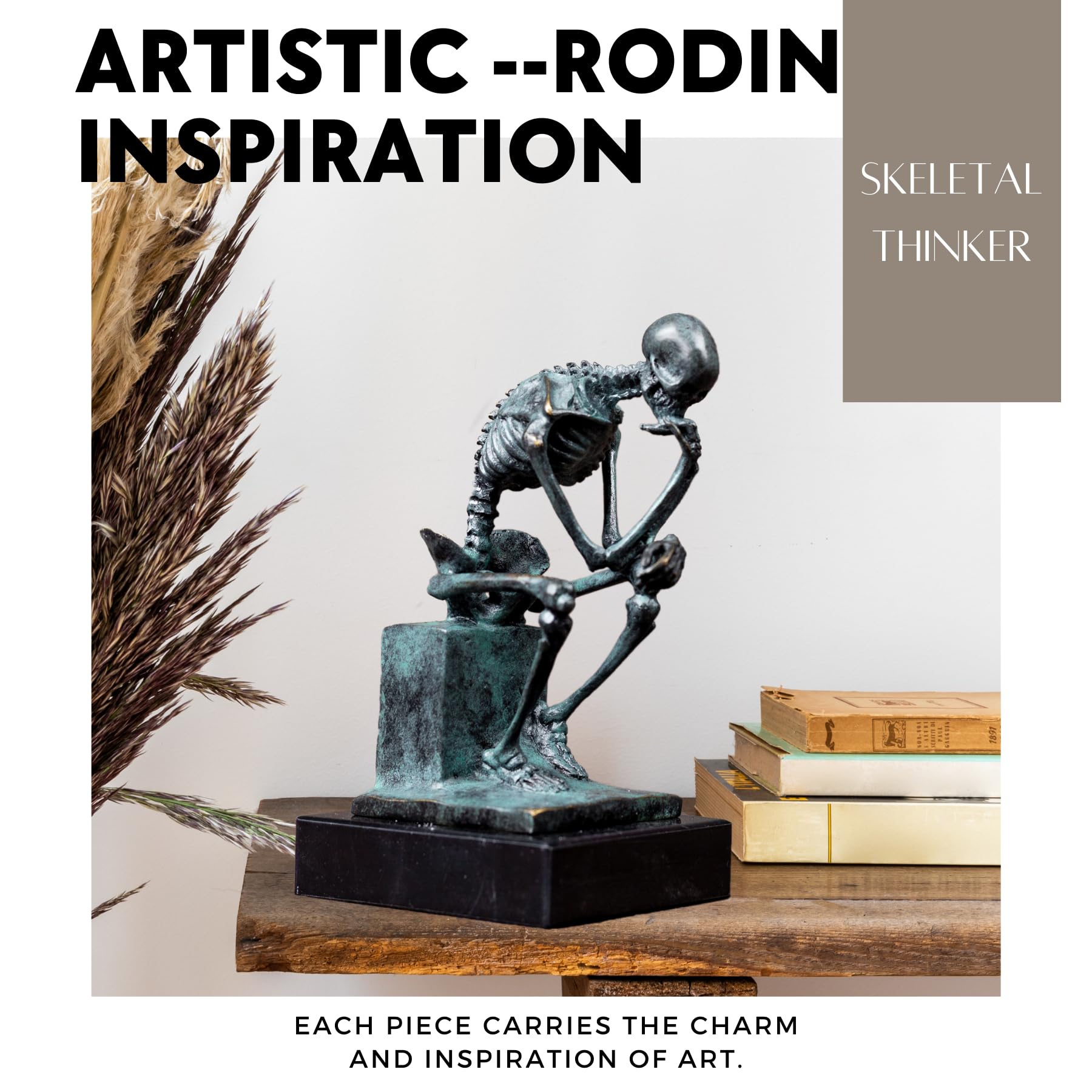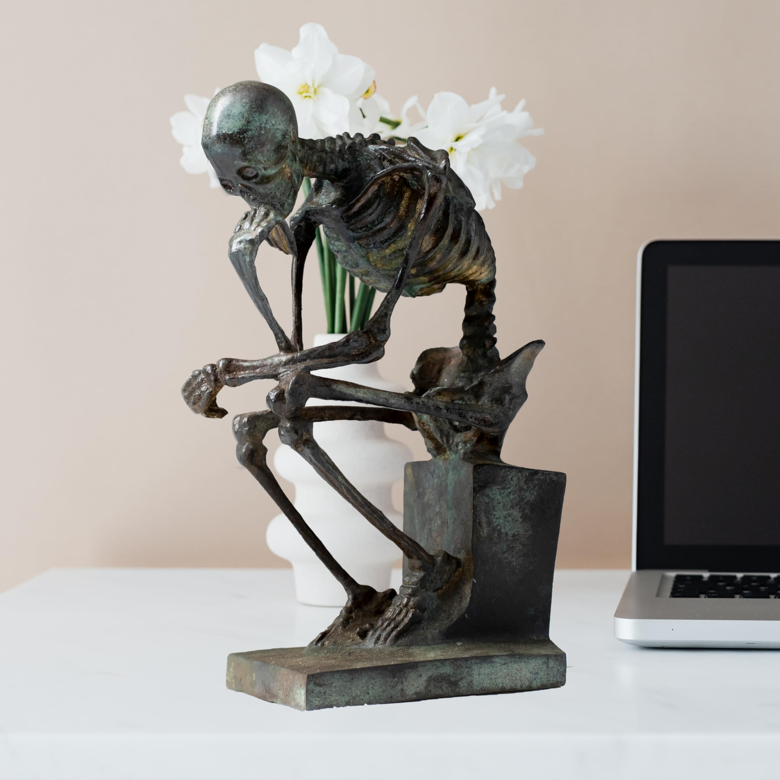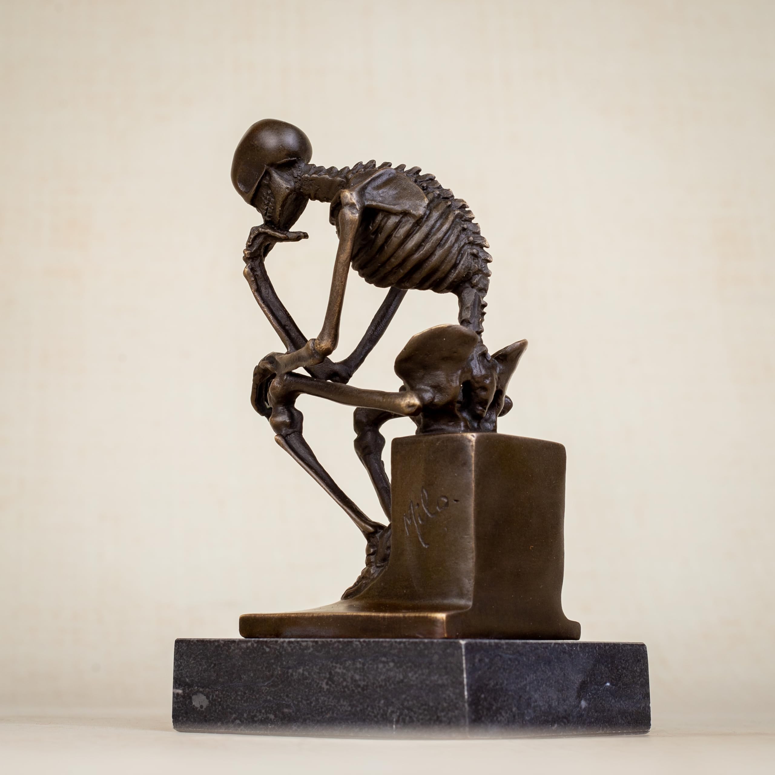 - Each bronze Thinker Figurine Skeleton Art sculpture is meticulously crafted by skilled artisans using the ancient lost-wax casting technique.