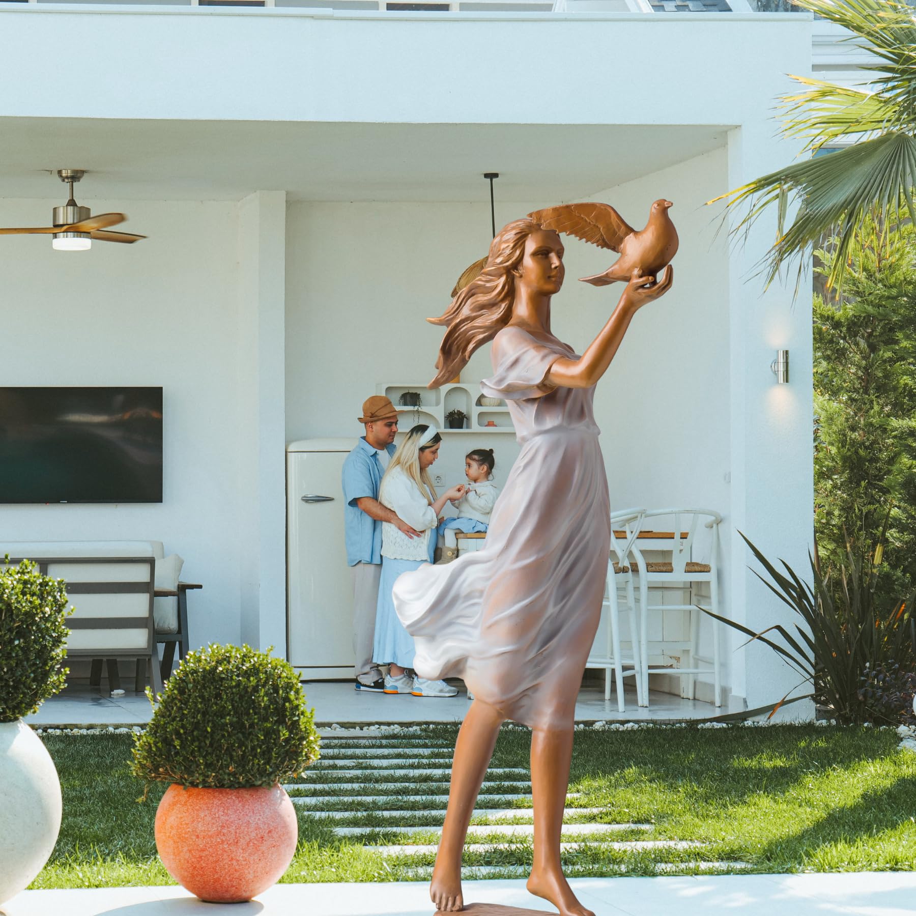 Standing 23.6 inches (60 cm) tall and weighing 4.5–5.5 kg, this piece is perfectly sized to make a statement in your living room, office, garden, or as part of an art collection. Its peaceful and uplifting theme makes it a meaningful gift for loved ones, especially for weddings, anniversaries, or peace-themed events.