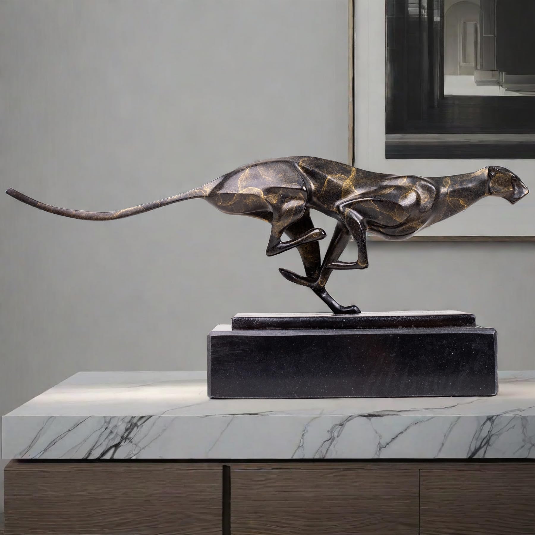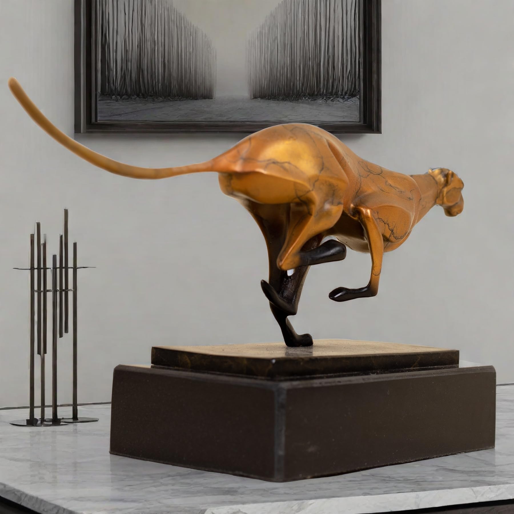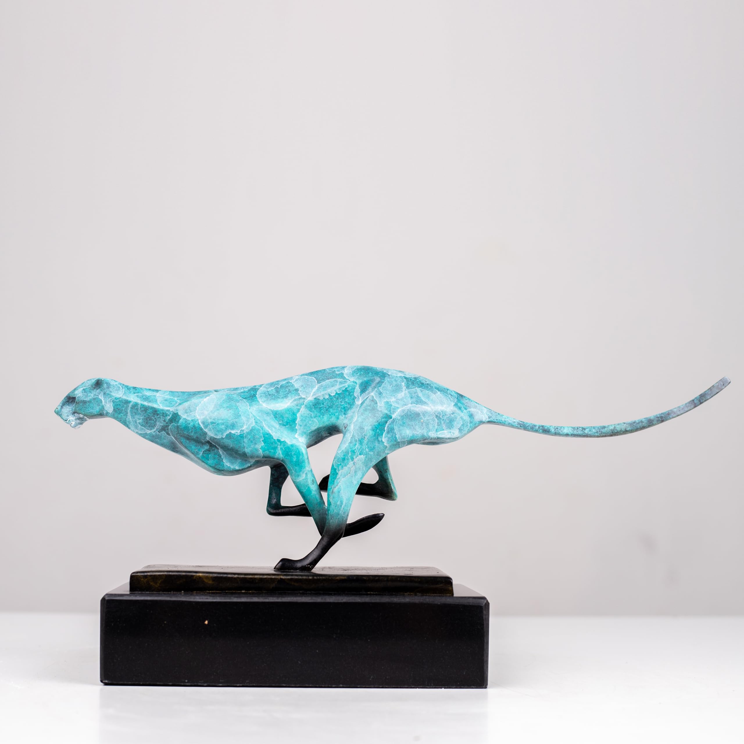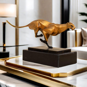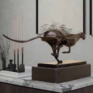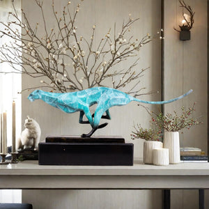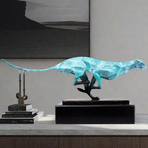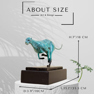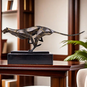 - The cheetah is known for its speed and elegance, and this sculpture perfectly captures those qualities. The sleek lines and poised stance of the cheetah create a sense of motion and vitality, making it a captivating focal point in any room.