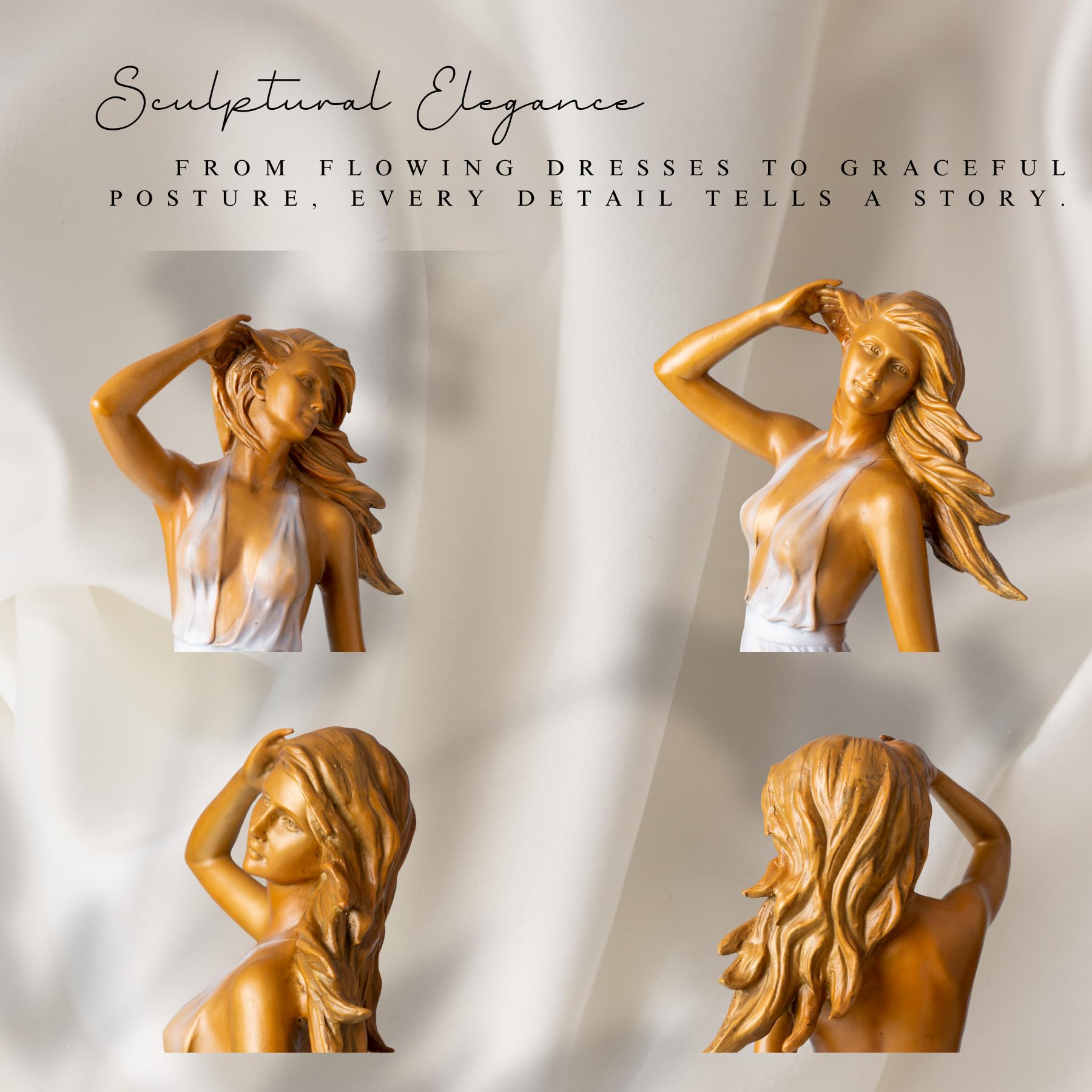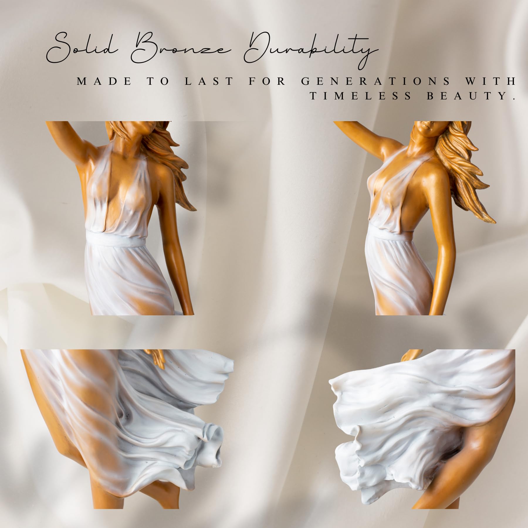 Handcrafted using the lost-wax bronze casting technique, this sculpture captures astonishing detail—from the serene expression on her face to the wind-swept strands of her hair. The rich bronze tones and lifelike contours make it a captivating focal point in any setting.