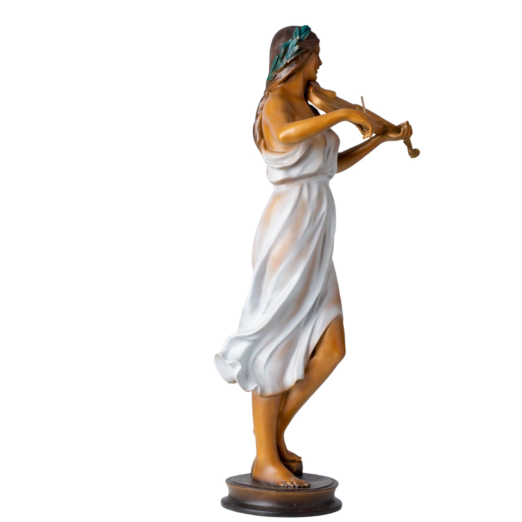 Elevating both artistry and craftsmanship, this bronze violinist sculpture captures the fluid elegance of a young woman mid-performance, her flowing gown and poised expression radiating timeless beauty. Inspired by the ethereal style of renowned sculptors, this piece transforms music into visual poetry.