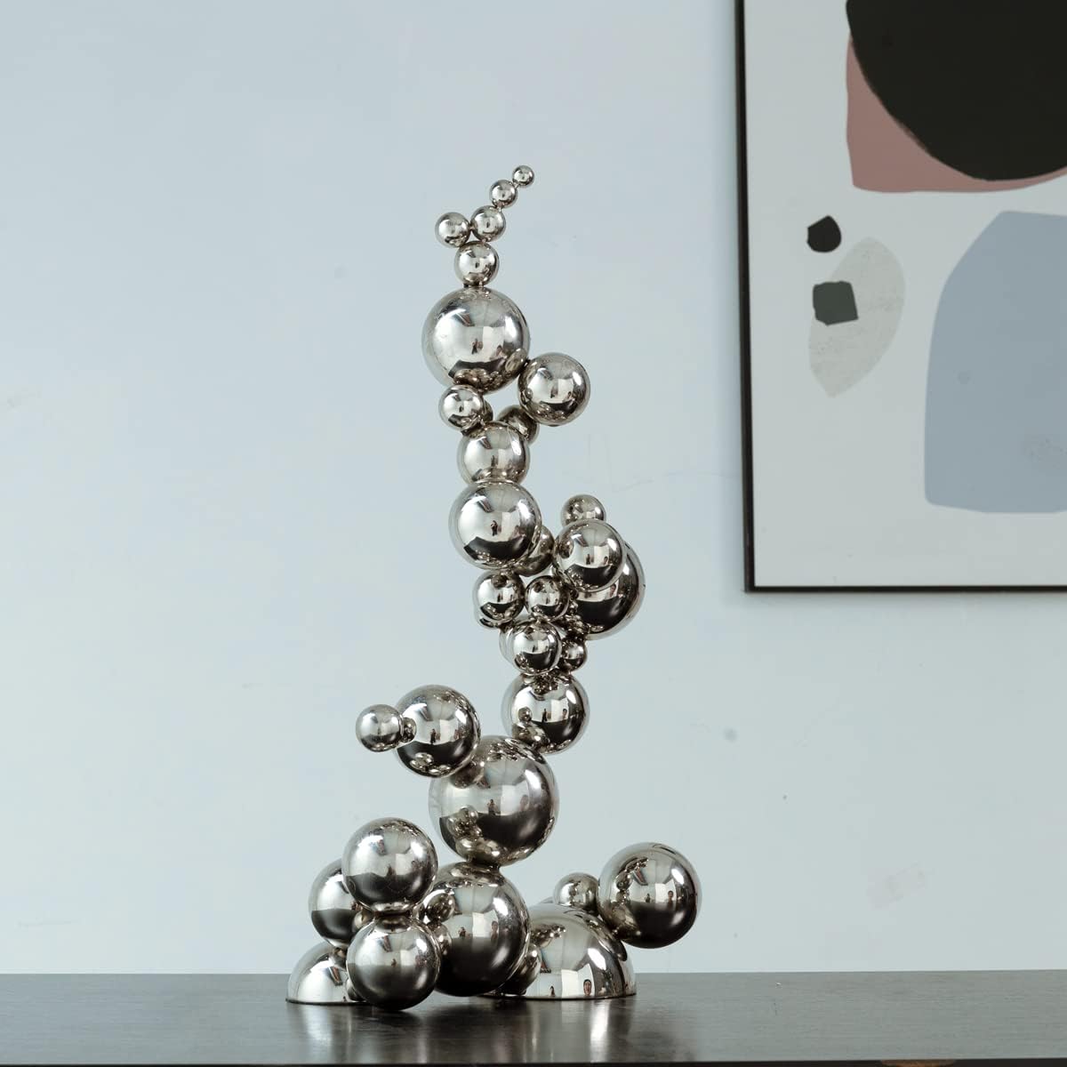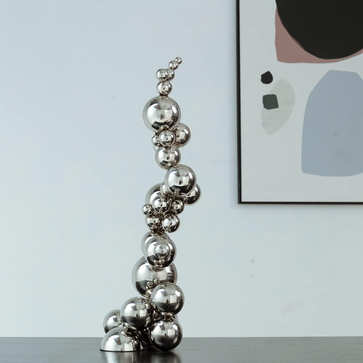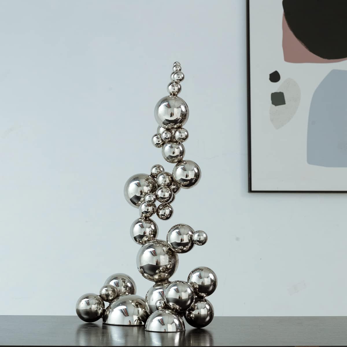 Modern Mirror Polished 3o4 Stainless Steel Abstract Sculpture Ball Tree Statue Tabletop Decorative Office Decor