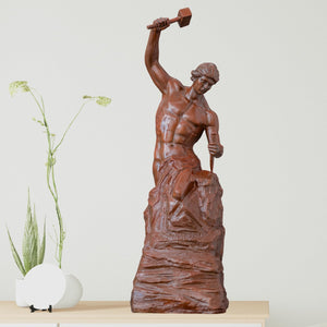 Artistic Style: Blending classical realism with modern abstraction, this sculpture highlights the rugged texture of the raw stone against the powerful, chiseled muscles of the emerging man.