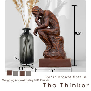 Solid Bronze Rodin The Thinker Statue - 9.5" Handcrafted Classical Bronze Thinker Sculpture - 5.4lbs Heavyweight Male Athlete Figurine - Luxury Home Office Desktop Art Decor & Philosophical Gift